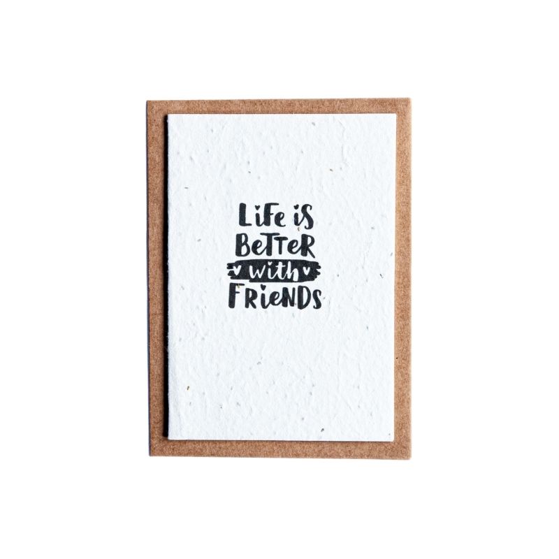 Unique plantable Life is Better with Friends seed paper greeting card.