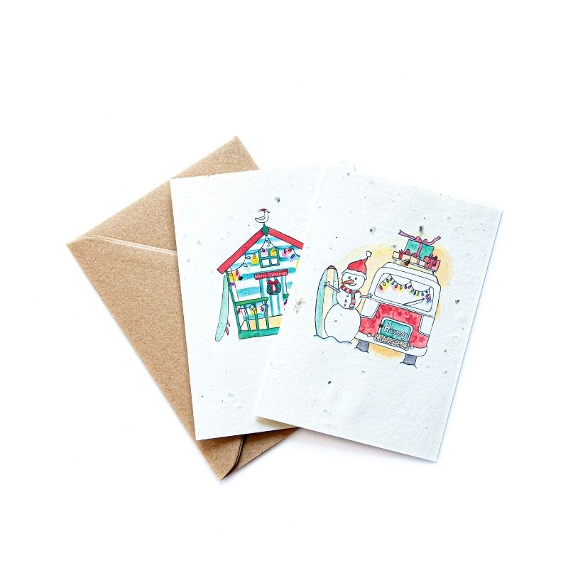 Camper christmas seaweed greeting cards 6pk