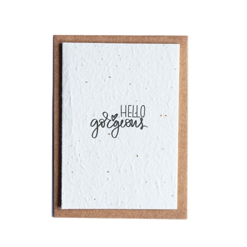 Unique plantable Hello Gorgeous seed paper greeting card.