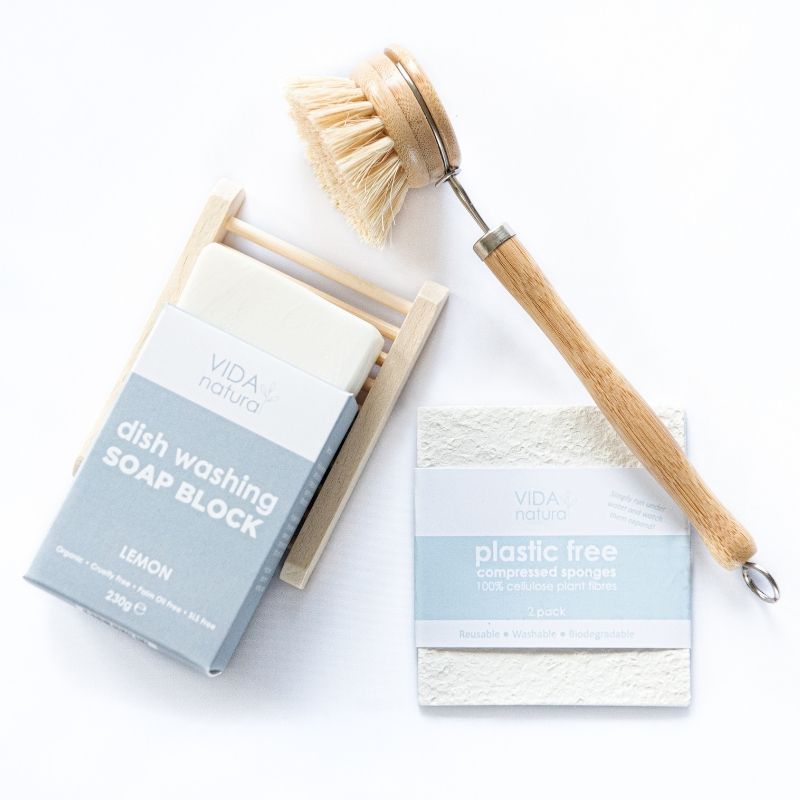Perfect plastic free kit to start your journey to zero waste. No more plastic washing up liquid bottles