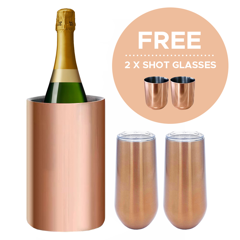 Wine Cooler & Champagne Flute Set – Rose Gold
